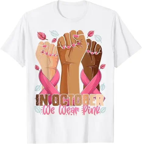 United We Wear Pink Breast Cancer Awareness Fists Cotton T-Shirt File for Sublimation & Printin October Support Casual Top